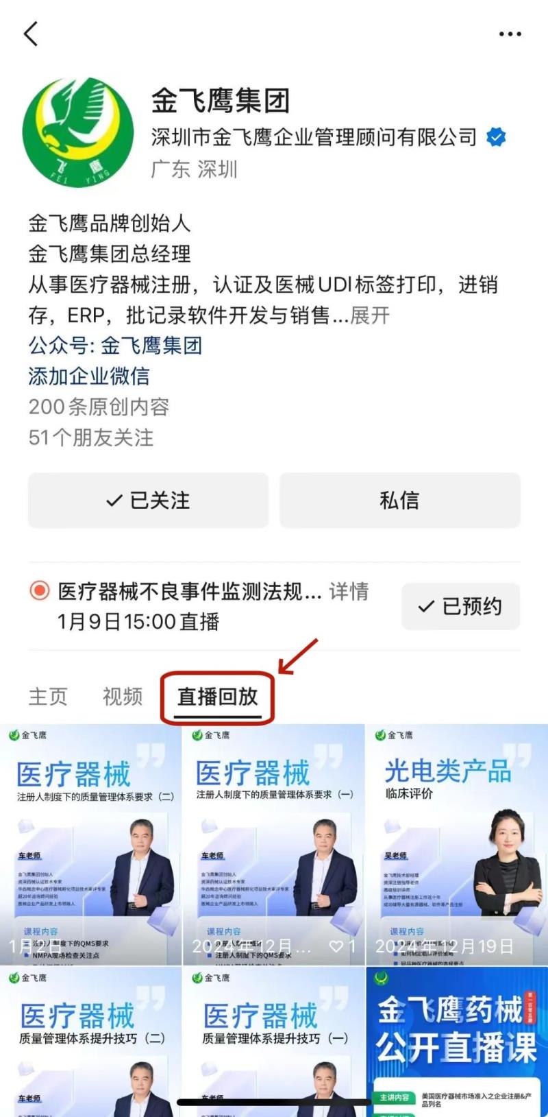 往期直播培訓(xùn)課程支持回放,關(guān)注“金飛鷹藥械咨詢服務(wù)”視頻號并點(diǎn)擊視頻號主頁,即可查看“直播回放”哦~