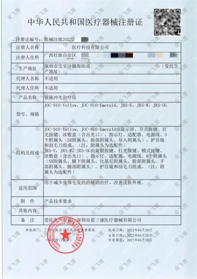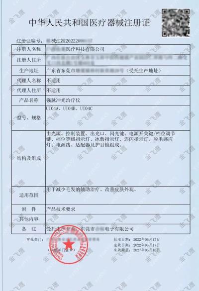 這兩大知名脫毛儀品牌,對(duì)應(yīng)的公司名稱(chēng)分別為由萊和千譽(yù),而你知道他們的產(chǎn)品注冊(cè)證(以及生產(chǎn)許可證)是由誰(shuí)協(xié)助辦理的嗎?沒(méi)錯(cuò),就是我們——金飛鷹!(驕傲臉.jpg)