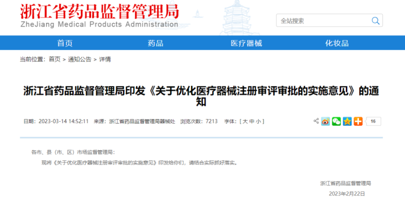 3月14日,浙江省藥監(jiān)局官網(wǎng)發(fā)布《關(guān)于優(yōu)化醫(yī)療器械注冊審評審批的實施意見》,具體內(nèi)容如下: