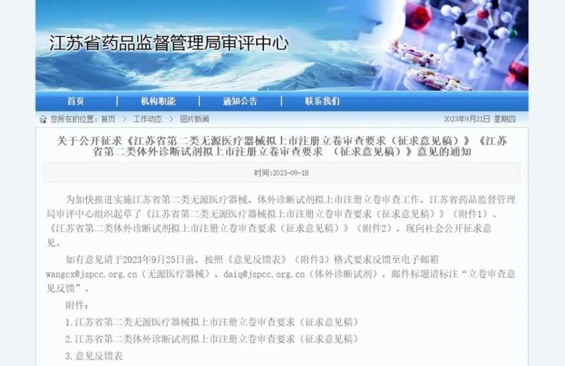 近日,江蘇省藥監(jiān)局審評(píng)中心發(fā)布《江蘇省第二類無(wú)源醫(yī)療器械擬上市注冊(cè)立卷審查要求(征求意見稿)》《江蘇省第二類體外診斷試劑擬上市注冊(cè)立卷審查要求 (征求意見稿)》,并向社會(huì)公開征求意見。