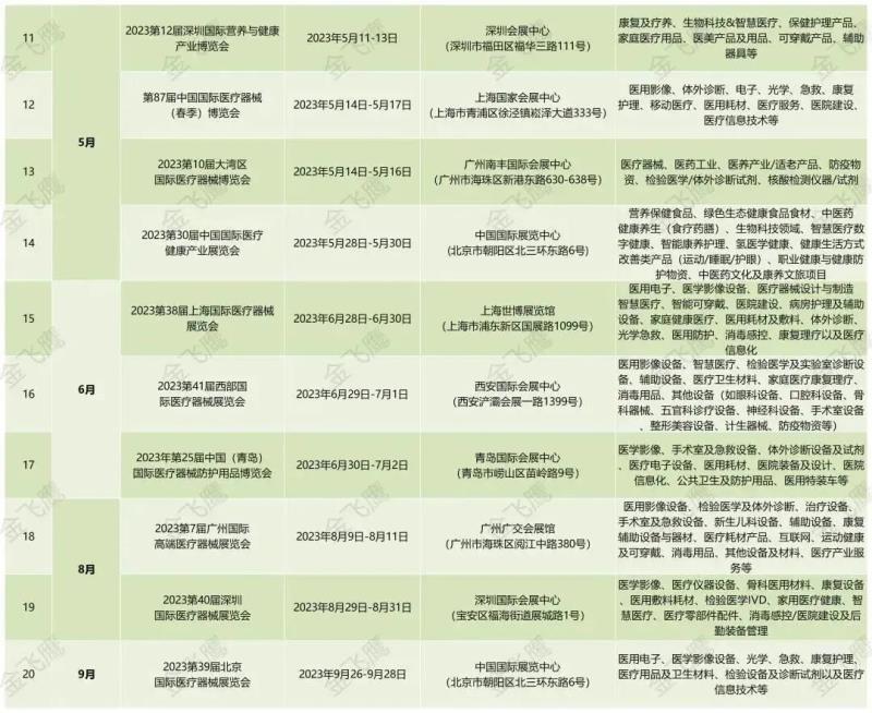 因此,本期文章小編匯總了一份2023年部分主要醫(yī)療器械展會(huì)信息(以上半年居多),覺(jué)得有用別忘收藏并點(diǎn)個(gè)“在看”分享給更多好友哦!預(yù)祝各醫(yī)械企業(yè)都能在展會(huì)上捕獲滿滿商機(jī)!后續(xù)我們還會(huì)更新更多展會(huì)信息,記得持續(xù)關(guān)注哦~