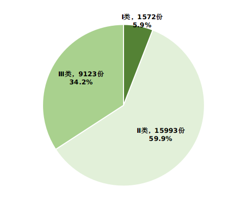 ? 附圖:涉及北京市醫(yī)療器械注冊人、備案人、進(jìn)口醫(yī)療器械代理人的報告按器械管理類別統(tǒng)計情況