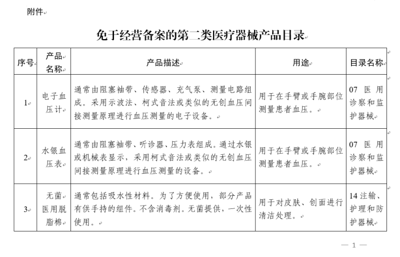 那么,具體哪些產(chǎn)品可以免于經(jīng)營備案呢?根據(jù)《國家藥監(jiān)局關(guān)于公布〈免于經(jīng)營備案的第二類醫(yī)療器械產(chǎn)品目錄〉的公告(2021年第86號)》,電子血壓計、水銀血壓表、無菌醫(yī)用脫脂棉、避孕套等13類第二類醫(yī)療器械產(chǎn)品可免于經(jīng)營備案,具體明細(xì)如下: