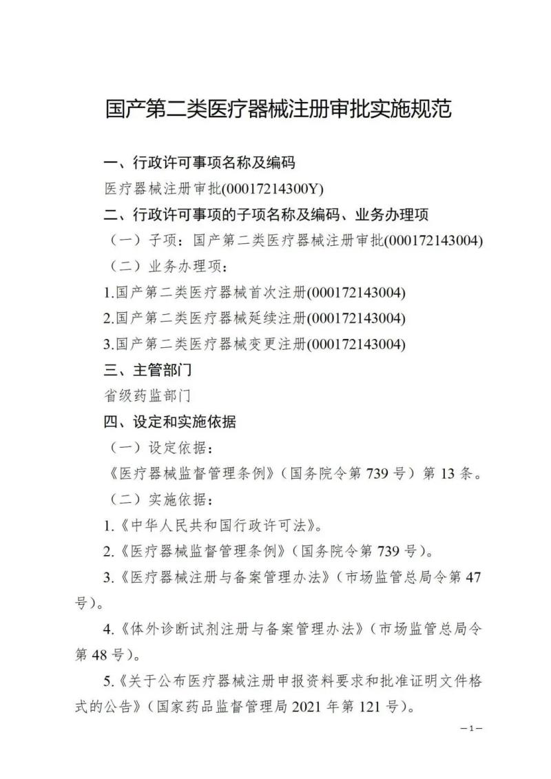 近日,湖南藥監(jiān)局官網(wǎng)發(fā)布省本級行政許可事項清單(2023年版)及實施規(guī)范(2023年版),共包括《國產(chǎn)第二類醫(yī)療器械注冊審批實施規(guī)范》、《第二、三類醫(yī)療器械生產(chǎn)許可實施規(guī)范》《藥品、醫(yī)療器械互聯(lián)網(wǎng)信息服務審批實施規(guī)范》等共計36項實施規(guī)范,我們將其中《國產(chǎn)第二類醫(yī)療器械注冊審批實施規(guī)范》轉(zhuǎn)載如下:
