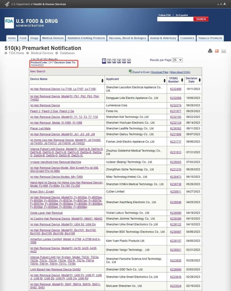 金飛鷹IPL脫毛儀案例庫(kù)中的6個(gè)510(k)號(hào)