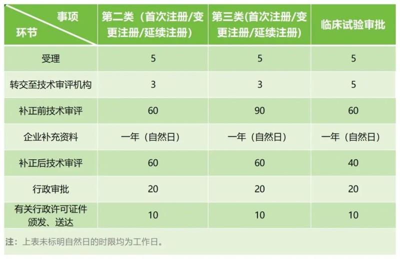 具體來(lái)說(shuō),第三類醫(yī)械產(chǎn)品的注冊(cè)申報(bào)時(shí)間是要長(zhǎng)于第二類醫(yī)療器械的,以下為國(guó)家藥監(jiān)局器審中心發(fā)布的法定時(shí)限表: