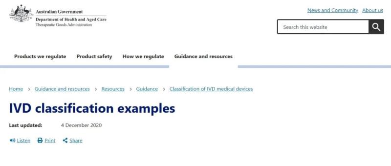 跟國(guó)內(nèi)分類規(guī)則不同,澳大利亞TGA根據(jù)醫(yī)療器械風(fēng)險(xiǎn)等級(jí)從低到高,將醫(yī)療器械分為Ⅰ類、Ⅱa類、Ⅱb類、Ⅲ類,體外診斷試劑則分為1、2、3、4類。