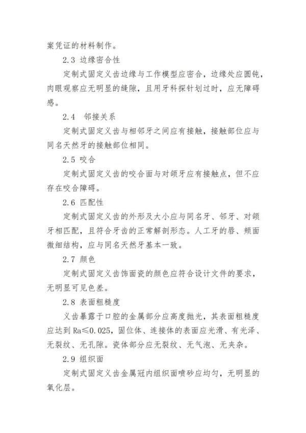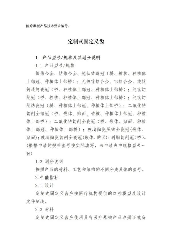 近日,山西省藥監(jiān)局發(fā)布《定制式義齒首次注冊(cè)標(biāo)準(zhǔn)化申報(bào)資料(征求意見)》,共包括《定制式義齒首次注冊(cè)申報(bào)資料要求及說明》《定制式義齒符合性聲明產(chǎn)品風(fēng)險(xiǎn)管理資料》《醫(yī)療器械安全和性能基本原則清單》《定制式固定義齒產(chǎn)品技術(shù)要求》《定制式活動(dòng)義齒產(chǎn)品技術(shù)要求》《定制式固定義齒說明書和最小銷售單元標(biāo)簽樣稿》《定制式活動(dòng)義齒說明書和最小銷售單元標(biāo)簽樣稿》8份附件,我們將其中定制式固定義齒產(chǎn)品技術(shù)要求》轉(zhuǎn)載如下,以供相關(guān)企業(yè)參考: