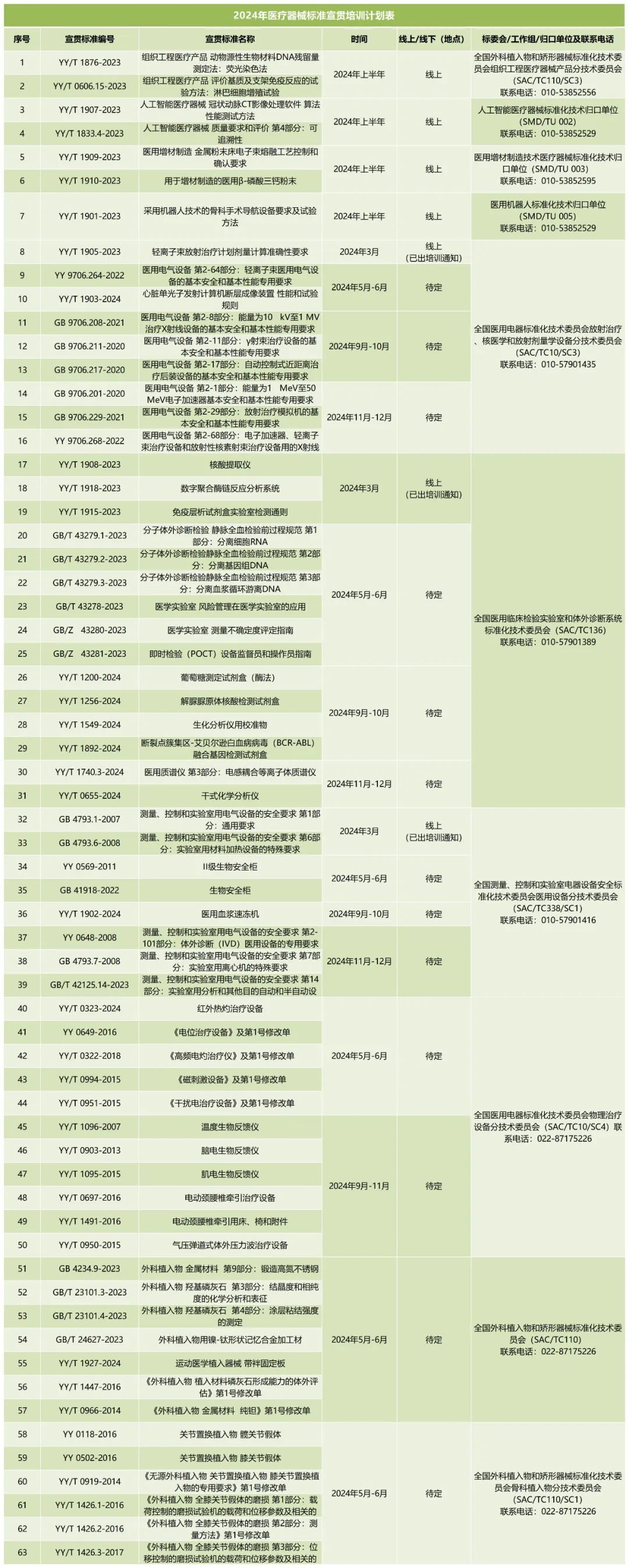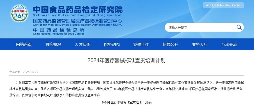 3月25日,國家藥監(jiān)局醫(yī)療器械標(biāo)準管理中心發(fā)布《2024年醫(yī)療器械標(biāo)準宣貫培訓(xùn)計劃》,擬分批對182項醫(yī)療器械國家標(biāo)準、行業(yè)標(biāo)準進行宣貫培訓(xùn),具體安排如下:
