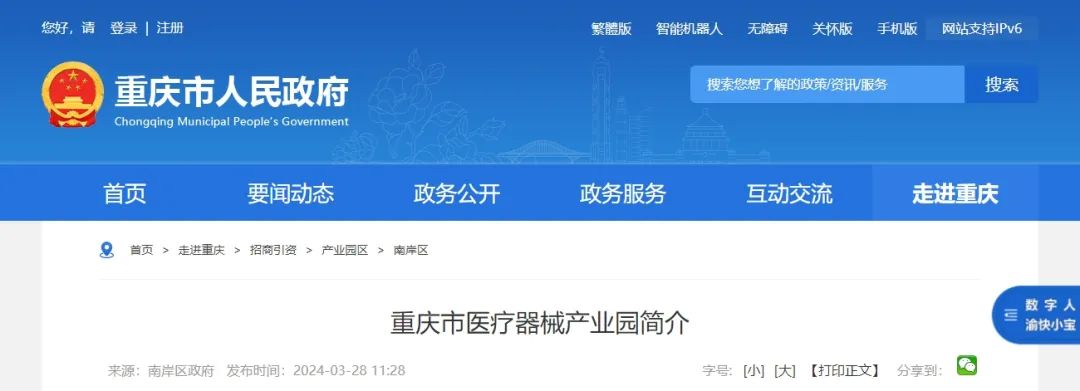 近日,重慶市人民政府發(fā)布一條產(chǎn)業(yè)園區(qū)招商引資動態(tài),對重慶市醫(yī)療器械產(chǎn)業(yè)園進行介紹,具體如下: