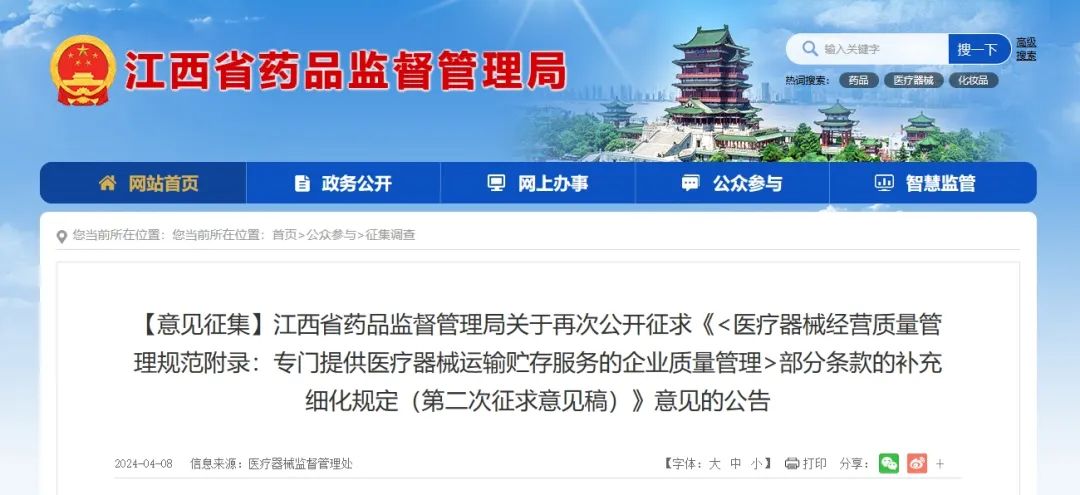 4月8日,江西省藥監(jiān)局發(fā)布《醫(yī)療器械經(jīng)營質(zhì)量管理規(guī)范附錄:專門提供醫(yī)療器械運(yùn)輸貯存服務(wù)的企業(yè)質(zhì)量管理部分條款的補(bǔ)充細(xì)化規(guī)定(第二次征求意見稿)》(以下簡稱《細(xì)化規(guī)定》),并向社會再次公開征求意見。