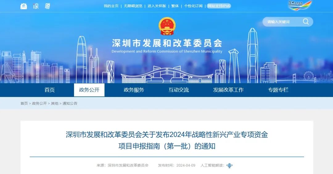 4月9日,深圳市發(fā)改委發(fā)布《2024年戰(zhàn)略性新興產(chǎn)業(yè)專項(xiàng)資金項(xiàng)目申報(bào)指南(第一批)》,共包含產(chǎn)業(yè)化事后補(bǔ)助、新技術(shù)新產(chǎn)品應(yīng)用示范推廣、注冊許可認(rèn)證等10個(gè)項(xiàng)目扶持計(jì)劃申報(bào)指南。其中產(chǎn)業(yè)化事后補(bǔ)助扶持計(jì)劃的扶持方向包括: