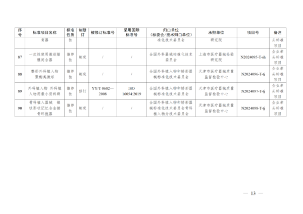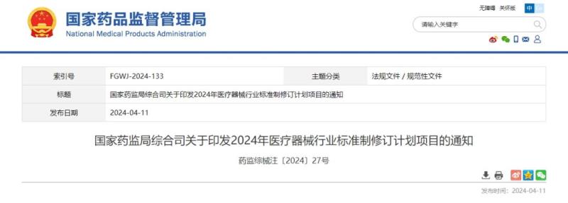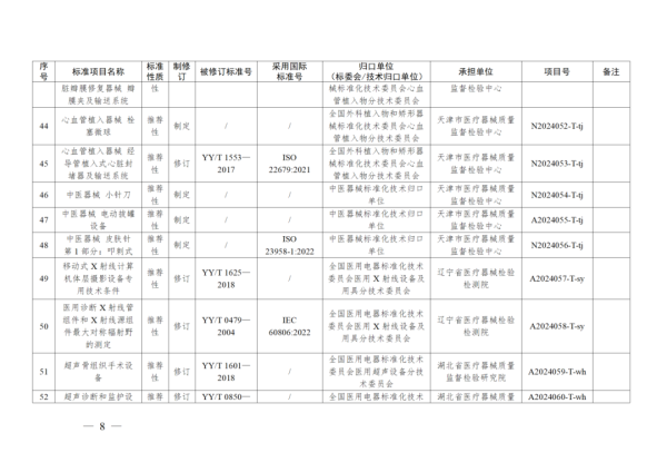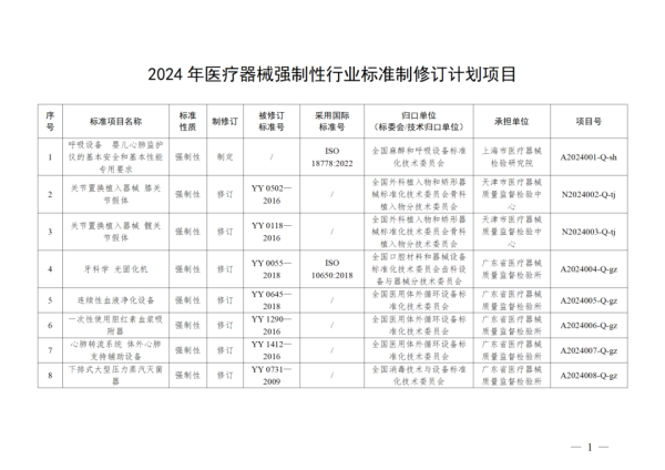 4月11日,國(guó)家藥監(jiān)局發(fā)布2024年醫(yī)療器械行業(yè)標(biāo)準(zhǔn)制修訂計(jì)劃,其中包含《呼吸設(shè)備 嬰兒心肺監(jiān)護(hù)儀的基本安全和基本性能專用要求》等8項(xiàng)強(qiáng)制性標(biāo)準(zhǔn)及《紫外治療設(shè)備》《注射用透明質(zhì)酸鈉溶液》等90項(xiàng)推薦性標(biāo)準(zhǔn),具體如下: