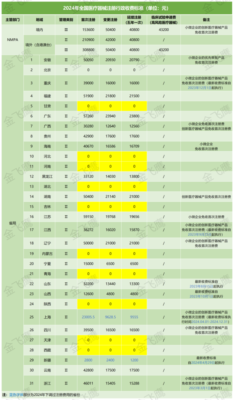 經(jīng)常關(guān)注我們的朋友也許還記得,2023年,山東、山西、江西等省份也分別調(diào)整了醫(yī)療器械注冊行政收費(fèi),那么本期文章我們就將2024年最新的【全國各省醫(yī)療器械注冊行政收費(fèi)】匯總整理如下圖,大家記得收藏備用哦!