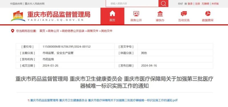 隨著第三批醫(yī)療器械唯一標識實施日期的臨近,近日,重慶市藥監(jiān)局發(fā)布《關(guān)于加強第三批醫(yī)療器械唯一標識實施工作的通知》,其中提到,按照《國家藥監(jiān)局國家衛(wèi)生健康委 國家醫(yī)保局關(guān)于做好第三批實施醫(yī)療器械唯一標識工作的公告》要求,對列入第三批實施產(chǎn)品目錄的103個醫(yī)療器械品種,注冊人應當按照時限要求有序開展相關(guān)工作。