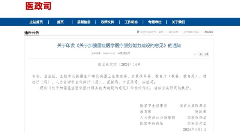近日,大規(guī)模設(shè)備更新工作加速推進(jìn),醫(yī)療器械行業(yè)再迎利好政策。5月6日,國(guó)家衛(wèi)健委等八部門印發(fā)《關(guān)于加強(qiáng)重癥醫(yī)學(xué)醫(yī)療服務(wù)能力建設(shè)的意見(jiàn)》的通知。意見(jiàn)提出,到2025年末,全國(guó)重癥醫(yī)學(xué)床位達(dá)到15張/10萬(wàn)人,可轉(zhuǎn)換重癥醫(yī)學(xué)床位達(dá)到10張/10萬(wàn)人,相關(guān)醫(yī)療機(jī)構(gòu)綜合ICU床醫(yī)比達(dá)到1:0.8,床護(hù)比達(dá)到1:3。到2027年末,全國(guó)重癥醫(yī)學(xué)床位達(dá)到18張/10萬(wàn)人,可轉(zhuǎn)換重癥醫(yī)學(xué)床位達(dá)到12張/10萬(wàn)人,重癥醫(yī)學(xué)醫(yī)療服務(wù)資源有效擴(kuò)容,區(qū)域布局更加均衡,??品?wù)能力顯著提升。