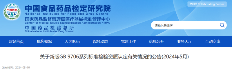 近日,中檢院發(fā)布通告:按照《國家藥監(jiān)局綜合司關(guān)于印發(fā)〈GB 9706.1-2020及配套并列標(biāo)準(zhǔn)、專用標(biāo)準(zhǔn)實施工作方案〉的通知》要求,為全面摸清底數(shù),統(tǒng)計了截至2024年5月6日,75個新版GB 9706系列標(biāo)準(zhǔn)檢驗資質(zhì)認(rèn)定情況和GB 9706.1-2020、YY 9706.102-2021獲證機構(gòu)信息(詳見附表)。
