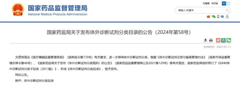 一、總體說明 (一)《分類目錄》所包括體外診斷試劑,是指按醫(yī)療器械管理的體外診斷試劑,不包括國家法定用于血源篩查的體外診斷試劑和采用放射性核素標記的體外診斷試劑。 (二)《分類目錄》以《關于發(fā)布〈體外診斷試劑分類規(guī)則〉的公告》(以下簡稱《分類規(guī)則》)為依據(jù),根據(jù)體外診斷試劑的特點編制而成,《分類目錄》結構由“一級序號、一級產(chǎn)品類別、二級序號、二級產(chǎn)品類別、預期用途、管理類別”六個部分組成,其中“一級產(chǎn)品類別”主要依據(jù)《分類規(guī)則》設立,共25個;“二級產(chǎn)品類別”是在一級產(chǎn)品類別項下的進一步細化,主要根據(jù)檢測靶標設置,原則上不包括方法或原理,共1852個;“預期用途”涉及的內(nèi)容包括被測物及主要臨床用途等,其目的主要是用于確定產(chǎn)品的管理類別,不代表對相關產(chǎn)品注冊內(nèi)容的完整描述。申請注冊或者辦理備案時,有關產(chǎn)品名稱和預期用途應當按照《體外診斷試劑注冊與備案管理辦法》及相關要求執(zhí)行。 分類編碼繼續(xù)沿用6840。 (三)被測物相同但在臨床上用于不同預期用途、且根據(jù)《分類規(guī)則》屬于不同管理類別的產(chǎn)品,若其在不同管理類別的用途都有較廣泛的應用,則依據(jù)《分類規(guī)則》分別列入相應管理類別,低類別條目的預期用途描述中應當明確不包含按高類別管理的預期用途。 對于具有多種預期用途、但根據(jù)《分類規(guī)則》管理類別相同的產(chǎn)品,進行“一級產(chǎn)品類別”歸類時,根據(jù)臨床主要用途、特定用途優(yōu)先歸類。 (四)根據(jù)《分類規(guī)則》第六條規(guī)定,用于微生物鑒別或者藥敏試驗的培養(yǎng)基,以及用于細胞增殖培養(yǎng),對細胞具有選擇、誘導、分化功能,且培養(yǎng)的細胞用于體外診斷的細胞培養(yǎng)基,按照第二類管理。符合《分類規(guī)則》且風險較低的僅做選擇性培養(yǎng)、不具備微生物鑒別及藥敏功能的微生物培養(yǎng)基,按照第一類管理。 (五)按照第一類管理的細胞培養(yǎng)基,僅保留基礎培養(yǎng)基產(chǎn)品,如RPMI -1640 培養(yǎng)基,并根據(jù)《分類規(guī)則》明確用途限制(不用于細胞治療、細胞回輸、輔助生殖等非體外診斷用途)。 (六)根據(jù)《分類規(guī)則》第六條、第七條規(guī)定,按照第一類管理的樣本處理用產(chǎn)品,主要指檢測反應發(fā)生前的樣本預處理階段所用的通用性產(chǎn)品,且不參與反應。原則上此類產(chǎn)品僅包括儀器平臺通用或方法學通用的樣本處理用試劑,不包括針對具體檢測項目的樣本處理用試劑。 (七)按照第一類管理的反應體系通用試劑,主要指檢測反應階段維持反應體系環(huán)境的通用性試劑。僅包括儀器平臺通用或方法學通用的反應體系試劑,不針對具體檢測項目。不可對完整的產(chǎn)品進行拆分后單獨注冊/備案。 (八)按照第一類管理的染色液,主要指通用性產(chǎn)品,不含特異性的蛋白、抗原、抗體、酶等物質(zhì),按染色液主要化學成分或常用名稱命名。 (九)根據(jù)《分類規(guī)則》,按照第一類管理的流式細胞儀用、免疫組化、原位雜交產(chǎn)品涉及的抗體或者探針,均為“單一抗體”或“單一探針”。原位雜交產(chǎn)品中針對單個基因檢測的斷裂基因探針、融合基因探針,因其產(chǎn)品的特性,需要兩個探針共同完成某個基因的檢測,視作“單一探針”;原位雜交產(chǎn)品中針對單個基因檢測的,產(chǎn)品的組成中除主要的特異性探針外,另含有起“輔助定位”作用的探針的,視作“單一探針”。 根據(jù)《分類規(guī)則》,上述按照第一類管理的“單一抗體”或“單一探針”組合后,作為第二類或第三類管理。 (十)《分類規(guī)則》中“僅為專業(yè)醫(yī)生提供輔助診斷信息的流式細胞儀用單一抗體”限指對體液中懸浮的細胞進行分析、提供輔助信息的單一抗體以及同型對照抗體。通過捕獲體液中其他成分形成生物粒子、從而用流式細胞儀進行檢測的體外診斷試劑,不符合《分類規(guī)則》中“流式細胞儀用單一抗體”有關要求,如在流式平臺上,基于抗原抗體反應,以特定“微珠”或者“微球”為載體,對白介素、干擾素、腫瘤壞死因子等物質(zhì)進行檢測分析的試劑。 (十一)除第(九)條第二款列出的情形外,《分類目錄》中未包含的組合產(chǎn)品,如組合后的預期用途僅為單項產(chǎn)品預期用途的組合,應當按照所包含的單項產(chǎn)品的最高管理類別確定其管理類別。如有新增預期用途,應當按照相關要求申請分類界定。 (十二)《分類目錄》未包括校準品、質(zhì)控品。根據(jù)《分類規(guī)則》,與第二類、第三類體外診斷試劑配合使用的校準品和質(zhì)控品的管理類別,與試劑管理類別相同;與第一類體外診斷試劑配合使用的校準品和質(zhì)控品,按第二類管理。 非定值質(zhì)控品不作為醫(yī)療器械管理。 (十三)根據(jù)《分類規(guī)則》第六條、第七條規(guī)定,與麻醉藥品、精神藥品、醫(yī)療用毒性藥品檢測相關,并具有臨床診斷用途、在臨床機構使用的體外診斷試劑,按第三類管理。麻醉藥品、精神藥品或醫(yī)療用毒性藥品的范圍根據(jù)國家藥監(jiān)局、公安部、國家衛(wèi)生健康委聯(lián)合發(fā)布的《麻醉藥品和精