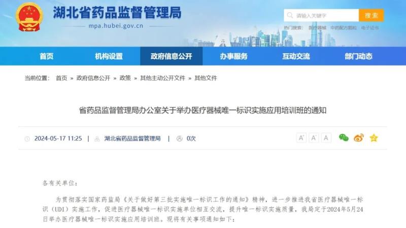 5月17日,湖北省藥監(jiān)局發(fā)布通知稱,該局定于2024年5月24日舉辦醫(yī)療器械唯一標(biāo)識(shí)實(shí)施應(yīng)用培訓(xùn)班。相關(guān)培訓(xùn)信息具體如下: