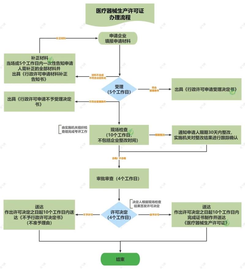 《醫(yī)療器械生產(chǎn)監(jiān)督管理辦法》規(guī)定,“從事第二類、第三類醫(yī)療器械生產(chǎn)活動,應(yīng)當(dāng)經(jīng)所在地省、自治區(qū)、直轄市藥品監(jiān)督管理部門批準(zhǔn),依法取得醫(yī)療器械生產(chǎn)許可證;從事第一類醫(yī)療器械生產(chǎn)活動,應(yīng)當(dāng)向所在地設(shè)區(qū)的市級負(fù)責(zé)藥品監(jiān)督管理的部門辦理醫(yī)療器械生產(chǎn)備案?!?/span> 首先,生產(chǎn)許可證的辦理要分兩種情況: 一、假如是普通注冊流程,即注冊申請人和生產(chǎn)企業(yè)為同一企業(yè),生產(chǎn)許可證在注冊證獲取后,由注冊證持有企業(yè)申請辦理; 二、在注冊人制度下,醫(yī)療器械注冊證和生產(chǎn)許可證實現(xiàn)了“解綁”,也就是說,符合條件的醫(yī)療器械注冊申請人可以單獨申請醫(yī)療器械注冊證,然后委托給有資質(zhì)和生產(chǎn)能力的生產(chǎn)企業(yè)。那么此時,生產(chǎn)許可證則在注冊證獲取后,由被委托企業(yè)申請辦理。 那接下來,我們再聊一聊醫(yī)療器械生產(chǎn)許可證的申請條件、申請材料及辦理流程。 1)有與生產(chǎn)的醫(yī)療器械相適應(yīng)的生產(chǎn)場地、環(huán)境條件、生產(chǎn)設(shè)備以及專業(yè)技術(shù)人員; 2)有能對生產(chǎn)的醫(yī)療器械進(jìn)行質(zhì)量檢驗的機構(gòu)或者專職檢驗人員以及檢驗設(shè)備; 3)有保證醫(yī)療器械質(zhì)量的管理制度; 4)有與生產(chǎn)的醫(yī)療器械相適應(yīng)的售后服務(wù)能力; 5)符合產(chǎn)品研制、生產(chǎn)工藝文件規(guī)定的要求。 辦理醫(yī)療器械生產(chǎn)許可證所需的材料如下(以廣東省政務(wù)網(wǎng)公布的為例): 《醫(yī)療器械生產(chǎn)許可核發(fā)申請表》 所生產(chǎn)的醫(yī)療器械注冊證以及產(chǎn)品技術(shù)要求復(fù)印件 法定代表人、企業(yè)負(fù)責(zé)人的身份證明,學(xué)歷證明或職稱證明、任命文件的復(fù)印件和工作簡歷 生產(chǎn)、質(zhì)量和技術(shù)負(fù)責(zé)人的身份、學(xué)歷、職稱復(fù)印件 生產(chǎn)管理、質(zhì)量檢驗崗位從業(yè)人員學(xué)歷、職稱一覽表 生產(chǎn)場地證明文件,包括房產(chǎn)證明或租賃協(xié)議和出租方的房產(chǎn)證明的復(fù)印件;廠區(qū)總平面圖,主要生產(chǎn)車間布置圖,有潔凈要求的車間,需提供潔凈室的合格檢測報告復(fù)印件,標(biāo)明功能間及人物流動走向 主要生產(chǎn)設(shè)備及檢驗儀器清單 生產(chǎn)質(zhì)量管理規(guī)范文件(包括質(zhì)量手冊和程序文件)目錄 產(chǎn)品的工藝流程圖,并注明主要控制項目和控制點,包括關(guān)鍵和特殊工序的設(shè)備,人員及工藝參數(shù)控制的說明 證明售后服務(wù)能力的材料 經(jīng)辦人的授權(quán)文件