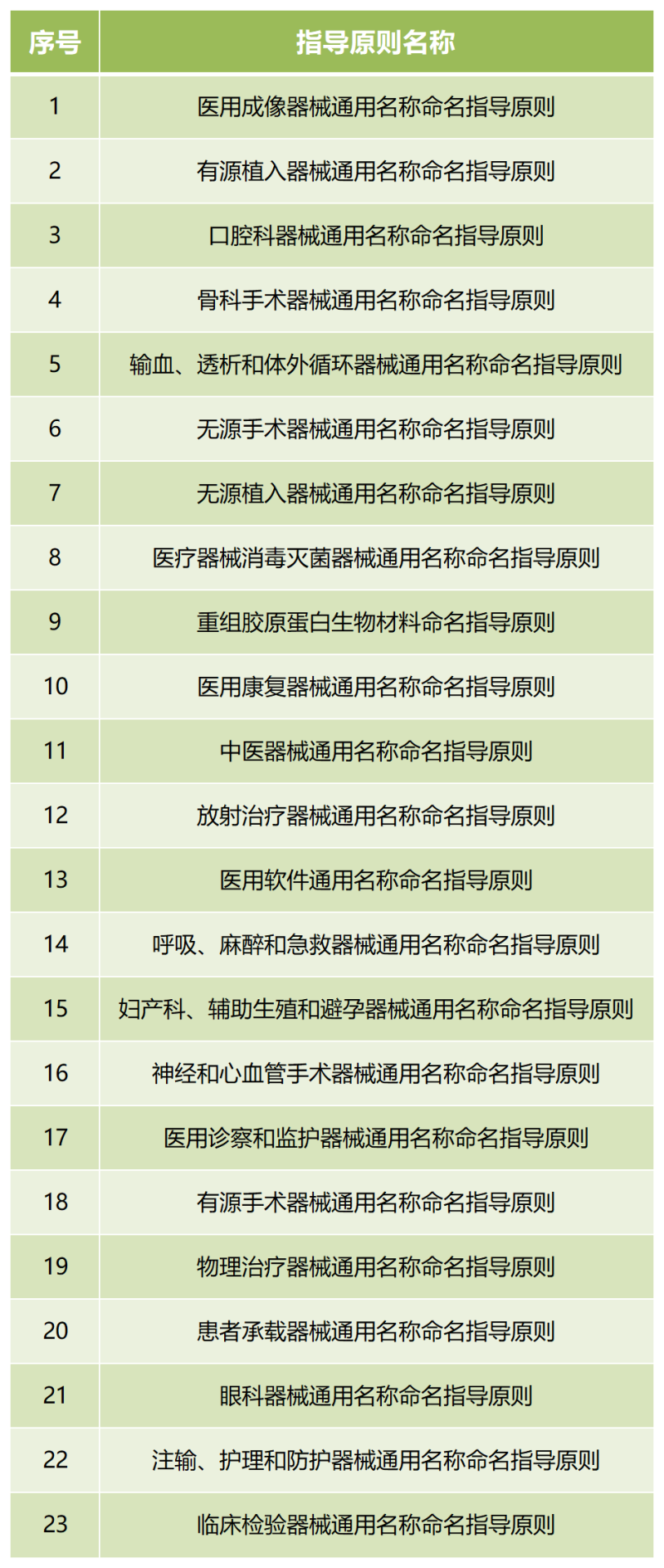 國家藥監(jiān)局在2019年發(fā)布了《醫(yī)療器械通用名稱命名指導原則》,這是制定醫(yī)療器械通用名稱的基本技術要求,同時用于指導各專業(yè)領域的命名指導原則編制。而對于各專業(yè)領域存在的特殊情形,也有相應的命名指導原則進行具體說明。今天我們就匯總了物理治療器械、醫(yī)用康復器械、醫(yī)用軟件等23類醫(yī)療器械產(chǎn)品通用名稱命名指導原則,具體如下: