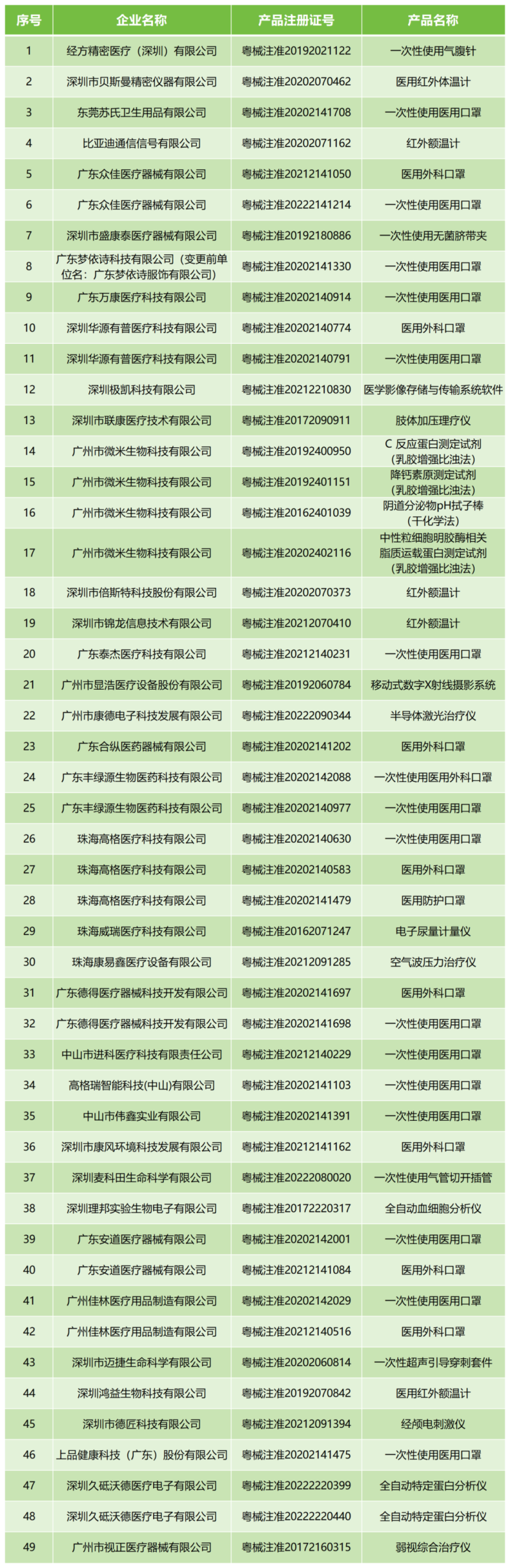 5月29日,廣東藥監(jiān)局發(fā)布通告稱,深圳市貝斯曼精密儀器有限公司、比亞迪通信信號有限公司等26家注冊人向廣東省藥品監(jiān)督管理局主動提出注銷產(chǎn)品注冊證的申請,我們通過查看附件發(fā)現(xiàn),注銷產(chǎn)品以醫(yī)用口罩居多,還有醫(yī)用紅外體溫計、半導(dǎo)體激光治療儀、空氣波壓力治療儀、弱視綜合治療儀等共49款產(chǎn)品。具體清單如下: