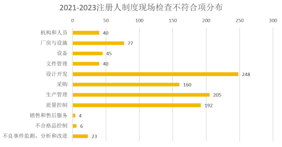 ↑ 2021-2023年注冊(cè)人制度現(xiàn)場(chǎng)檢查不符合項(xiàng)分布