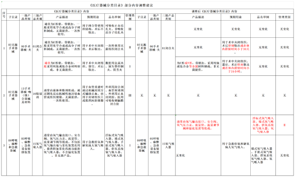 以上僅以圖片形式對本次擬調(diào)整的《醫(yī)療器械分類目錄》內(nèi)容進行展示,如需查看表格文件,請點擊“閱讀原文”。