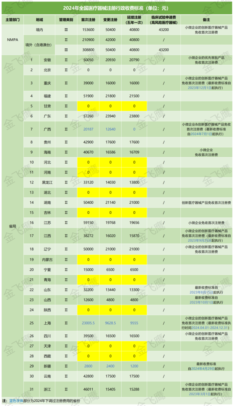 今年以來,上海、新疆都發(fā)布了有關(guān)降低醫(yī)療器械注冊收費(fèi)的相關(guān)公告,那么老規(guī)矩,本期文章我們將2024年【全國各省醫(yī)療器械注冊行政收費(fèi)標(biāo)準(zhǔn)】進(jìn)行實(shí)時更新,匯總整理如下圖,大家記得收藏備用哦!