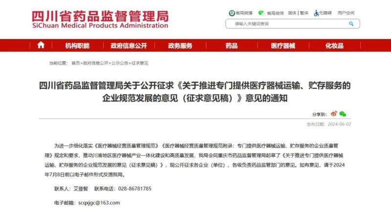 為了保障公眾依法獲取專門提供醫(yī)療器械運輸、貯存服務(wù)的企業(yè)相關(guān)信息,提高行業(yè)和監(jiān)管透明度,構(gòu)建川渝醫(yī)療器械一體化監(jiān)管模式,《意見(征求意見稿)》規(guī)定設(shè)區(qū)的市級藥品監(jiān)管部門要及時公布專門提供醫(yī)療器械運輸、貯存服務(wù)的企業(yè)相關(guān)信息,并細(xì)化明確了藥品監(jiān)管部門相關(guān)許可和監(jiān)管事項。