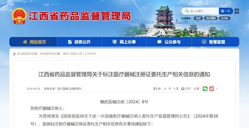 近日,繼江蘇省、湖北省、廣東省、湖南省、廣西壯族自治區(qū)、云南省、吉林省(具體政策可點擊右側鏈接回顧→醫(yī)療器械委托生產信息標注)后,江西省藥監(jiān)局也發(fā)布了《關于標注醫(yī)療器械注冊證委托生產相關信息的通知》,相關事項具體如下:
