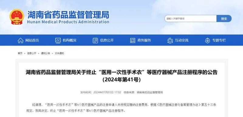 7月3日,湖南藥監(jiān)局發(fā)布公告稱,“醫(yī)用一次性手術(shù)衣”“醫(yī)用皮膚修復(fù)膜”等6個(gè)醫(yī)療器械產(chǎn)品的注冊(cè)申請(qǐng)人未按規(guī)定繳納注冊(cè)費(fèi)用,根據(jù)《醫(yī)療器械注冊(cè)與備案管理辦法》第五十三條規(guī)定,該局決定終止這6個(gè)醫(yī)療器械產(chǎn)品注冊(cè)程序,具體明細(xì)如下: