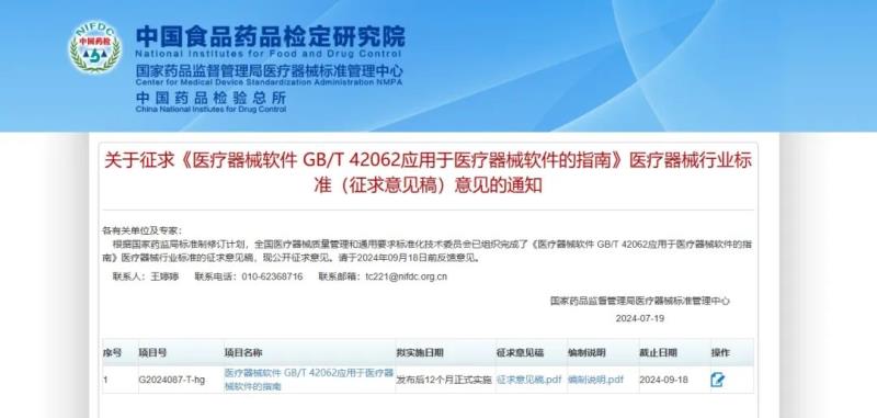 近日,國家藥監(jiān)局醫(yī)療器械標準管理中心發(fā)布《醫(yī)療器械軟件 GB/T 42062應用于醫(yī)療器械軟件的指南》醫(yī)療器械行業(yè)標準的征求意見稿,用以代替YY/T 1406.1-2016《醫(yī)療器械軟件 第1部分:YY/T 0316應用于醫(yī)療器械軟件的指南》,并向社會公開征求意見。