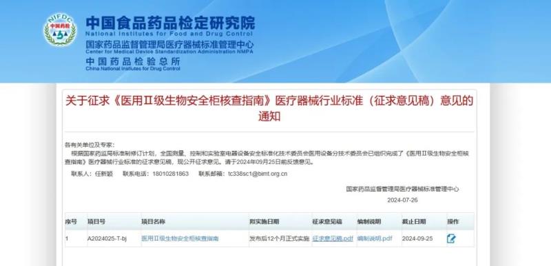 近日,國家藥監(jiān)局醫(yī)療器械標(biāo)準(zhǔn)管理中心發(fā)布《醫(yī)用Ⅱ級生物安全柜核查指南》醫(yī)療器械行業(yè)標(biāo)準(zhǔn)的征求意見稿,用以代替YY/T 1540-2017,并向社會公開征求意見。