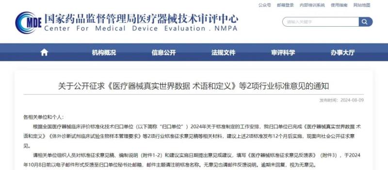 近日,國(guó)家藥監(jiān)局器審中心發(fā)布《醫(yī)療器械真實(shí)世界數(shù)據(jù) 術(shù)語(yǔ)和定義》《體外診斷試劑臨床試驗(yàn)生物樣本管理要求》等2項(xiàng)行業(yè)標(biāo)準(zhǔn)征求意見(jiàn)稿等相關(guān)材料,并向社會(huì)公開(kāi)征求意見(jiàn)。