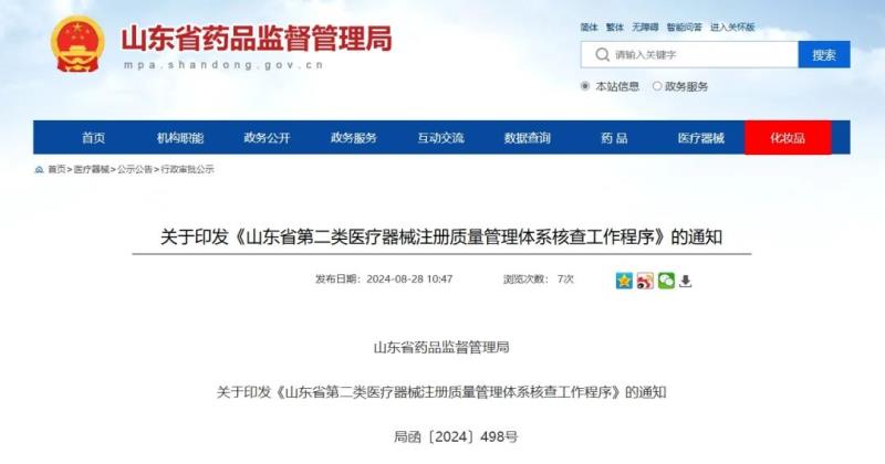 8月28日,山東省藥監(jiān)局發(fā)布新版《山東省第二類醫(yī)療器械注冊(cè)質(zhì)量管理體系核查工作程序》(以下簡(jiǎn)稱《工作程序》),并宣布自發(fā)布之日(2024年8月28日)起施行。
