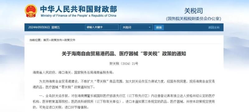 一、全島封關(guān)運作前,對在海南博鰲樂城國際醫(yī)療旅游先行區(qū)(以下稱先行區(qū))內(nèi)注冊登記具有獨立法人資格并經(jīng)認定的醫(yī)療機構(gòu)、醫(yī)學(xué)教育高等院校、醫(yī)藥類科研院所(以下稱有關(guān)單位),進口本通知第三條規(guī)定的藥品、醫(yī)療器械,并按本政策規(guī)定使用的,可免征進口關(guān)稅、進口環(huán)節(jié)增值稅。 符合享受政策條件的有關(guān)單位進口藥品、醫(yī)療器械,自愿繳納進口環(huán)節(jié)增值稅的,可在辦理減免稅手續(xù)時提出申請。 二、符合享受政策條件的有關(guān)單位名單,由先行區(qū)管理局會同海南省衛(wèi)生健康、藥品監(jiān)督管理、教育、科技、財政部門,以及海口海關(guān)、國家稅務(wù)總局海南省稅務(wù)局等認定,動態(tài)調(diào)整,并函告??诤jP(guān)、國家稅務(wù)總局海南省稅務(wù)局。 三、享受本通知免征進口關(guān)稅、進口環(huán)節(jié)增值稅的藥品、醫(yī)療器械(以下稱免稅藥品、醫(yī)療器械)包括: (一)已在我國批準注冊的進口藥品、醫(yī)療器械; (二)按國務(wù)院有關(guān)規(guī)定,尚未獲得我國批準注冊,但經(jīng)海南省人民政府批準允許在先行區(qū)內(nèi)進口使用的藥品(不含疫苗)、醫(yī)療器械(以下稱特許藥品、醫(yī)療器械)。 四、有關(guān)單位進口免稅藥品、醫(yī)療器械前,由先行區(qū)管理局會同海南省藥品監(jiān)督管理部門核實每批進口藥品、醫(yī)療器械注冊證或相關(guān)批準文件,確認有關(guān)單位進口商品屬于政策規(guī)定范圍內(nèi)的藥品、醫(yī)療器械,并函告有關(guān)單位所在地海關(guān)、稅務(wù)部門。 有關(guān)單位向先行區(qū)所在地海關(guān)申請辦理減免稅手續(xù)時,先行區(qū)管理局應(yīng)參照現(xiàn)行特許藥品、醫(yī)療器械管理模式,對申請免稅的藥品、醫(yī)療器械進行管理,并將相關(guān)信息及時上傳先行區(qū)特許藥品、醫(yī)療器械追溯管理平臺,對免稅藥品、醫(yī)療器械全流程監(jiān)管。 五、符合享受政策條件的醫(yī)學(xué)教育高等院校、醫(yī)藥類科研院所進口的免稅藥品、醫(yī)療器械僅限在先行區(qū)內(nèi)自用。 六、符合享受政策條件的醫(yī)療機構(gòu)憑本機構(gòu)醫(yī)師開具的處方(醫(yī)囑),向在本機構(gòu)現(xiàn)場就診的患者銷售免稅藥品、醫(yī)療器械。銷售量應(yīng)符合診療需要及處方管理有關(guān)規(guī)定。稅收政策按照現(xiàn)行國內(nèi)環(huán)節(jié)稅收政策有關(guān)規(guī)定執(zhí)行。 除上述情形外,有關(guān)單位不得將免稅藥品、醫(yī)療器械轉(zhuǎn)讓給個人。 七、對符合享受政策條件的有關(guān)單位進口的免稅藥品、醫(yī)療器械,在海關(guān)監(jiān)管年限內(nèi)應(yīng)依法接受海關(guān)監(jiān)管;對醫(yī)療機構(gòu)憑本機構(gòu)醫(yī)師開具的處方(醫(yī)囑)向患者銷售后的免稅藥品、醫(yī)療器械,海關(guān)不再按特定減免稅貨物進行后續(xù)監(jiān)管。 八、患者在醫(yī)療機構(gòu)獲得的免稅藥品、醫(yī)療器械屬于個人使用的最終商品,不得再次銷售,應(yīng)在先行區(qū)內(nèi)使用,不得帶離、寄遞出先行區(qū)。 九、有關(guān)單位因客觀原因按相關(guān)規(guī)定轉(zhuǎn)讓免稅藥品、醫(yī)療器械的,應(yīng)事先經(jīng)海南省藥品監(jiān)督管理、衛(wèi)生健康等部門審核同意。其中,對屬于海關(guān)監(jiān)管年限內(nèi)的免稅藥品、醫(yī)療器械,有關(guān)單位應(yīng)憑上述部門的確認材料按規(guī)定向其所在地海關(guān)補繳進口關(guān)稅、進口環(huán)節(jié)增值稅。 有關(guān)單位違反本通知規(guī)定將處于海關(guān)監(jiān)管年限內(nèi)的免稅藥品、醫(yī)療器械進行轉(zhuǎn)讓的,由海關(guān)按規(guī)定處理。 患者違反規(guī)定再次銷售或?qū)⒚舛愃幤?、醫(yī)療器械帶離、寄遞出先行區(qū)的,先行區(qū)管理局應(yīng)予以追回,無法追回的,由先行區(qū)管理局按規(guī)定處理。 上述轉(zhuǎn)讓、銷售行為,照章征收國內(nèi)環(huán)節(jié)增值稅。 十、海南省人民政府應(yīng)落實主體責(zé)任,商財政部、海關(guān)總署、稅務(wù)總局、國家衛(wèi)生健康委、國家藥監(jiān)局等部門制定管理辦法,明確符合享受政策條件的有關(guān)單位的確定程序,免稅藥品、醫(yī)療器械管理要求,患者在先行區(qū)內(nèi)使用要求等,并明確對有關(guān)單位違規(guī)使用、處置以及患者違規(guī)銷售、帶離、寄遞上述商品的處理標準、處罰辦法和聯(lián)合懲戒措施。管理辦法與本通知同步印發(fā)實施。 十一、自政策實施起,海南省人民政府應(yīng)組織定期比對免稅藥品、醫(yī)療器械進口、銷售及使用情況,并加強對符合享受政策條件的有關(guān)單位使用、處置免稅藥品、醫(yī)療器械〔包括醫(yī)療機構(gòu)醫(yī)師開具處方(醫(yī)囑)〕的管理和監(jiān)督,及時查處違法違規(guī)行為,并每3個月向本通知發(fā)文單位報送實施情況,包括符合享受政策條件的有關(guān)單位基本情況,每個單位進口、銷售免稅藥品和醫(yī)療器械情況以及稅款減免數(shù)據(jù)等。 海南省有關(guān)部門應(yīng)完善先行區(qū)特許藥品、醫(yī)療器械追溯管理平臺功能,做好技術(shù)系統(tǒng)升級改造,滿足免稅藥