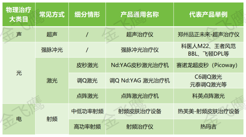 對(duì)醫(yī)療器械行業(yè)稍有了解的朋友應(yīng)該都聽過(guò)“聲光電”,這是幾種物理治療方式的簡(jiǎn)稱,它們在醫(yī)美產(chǎn)品領(lǐng)域的應(yīng)用極為廣泛。這里的“聲”指的是超聲;“光”的形式則有多種,如激光、強(qiáng)脈沖光、紅藍(lán)光、紫光等,而就激光來(lái)說(shuō),又分為皮秒激光、調(diào)Q激光、點(diǎn)陣激光等,強(qiáng)脈沖光常見代表性產(chǎn)品則有M22、BBL、王者風(fēng)范等;電學(xué)類產(chǎn)品最常見的則是熱瑪吉,主要利用電能作用于人體組織產(chǎn)生熱效應(yīng),以實(shí)現(xiàn)減輕皮膚皺紋等作用。