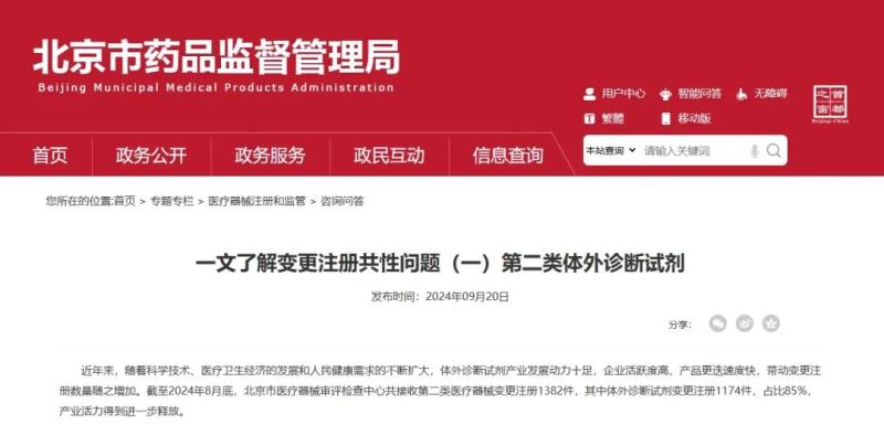 近年來,隨著科學技術、醫(yī)療衛(wèi)生經(jīng)濟的發(fā)展和人民健康需求的不斷擴大,體外診斷試劑產(chǎn)業(yè)發(fā)展動力十足,企業(yè)活躍度高、產(chǎn)品更迭速度快,帶動變更注冊數(shù)量隨之增加。近日,北京市藥監(jiān)局梳理了2024年變更注冊審評發(fā)補關注點,并對常見的典型問題進行了分析解答,我們將其轉(zhuǎn)載如下: