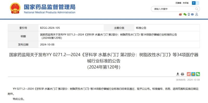 10月8日,國家藥監(jiān)局發(fā)布YY/T 1938-2024《醫(yī)用透明質(zhì)酸鈉敷料》、YY/T 0109-2024《醫(yī)用超聲霧化器》、YY/T 1930-2024《醫(yī)療器械臨床評價 術(shù)語和定義》等34項醫(yī)療器械行業(yè)標準,其中21項為修訂,13項為制定,最早自2025年10月15日起實施。