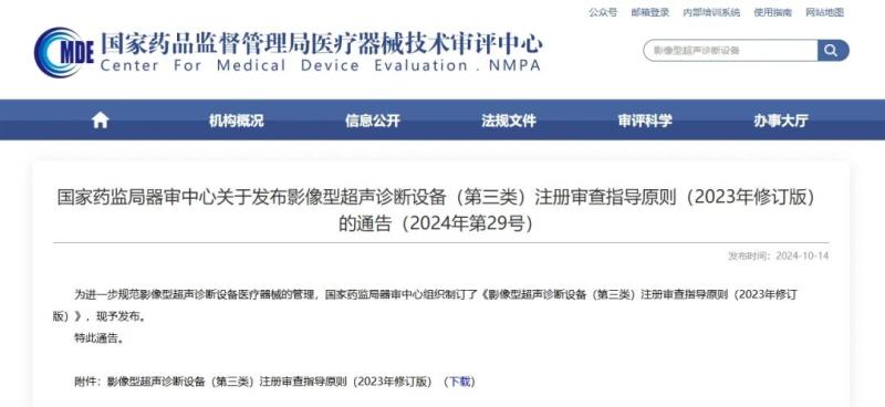 近日,國(guó)家藥監(jiān)局器審中心發(fā)布《影像型超聲診斷設(shè)備(第三類)注冊(cè)審查指導(dǎo)原則(2023年修訂版)》(以下簡(jiǎn)稱《指導(dǎo)原則》),該指導(dǎo)原則適用于第三類影像型超聲診斷設(shè)備的注冊(cè)申報(bào),包括超聲脈沖回波成像設(shè)備,分類編碼06-07-01;超聲回波多普勒成像設(shè)備,分類編碼06-07-02;超聲探頭,分類編碼06-08-04;超聲電子內(nèi)窺鏡06-17-04。