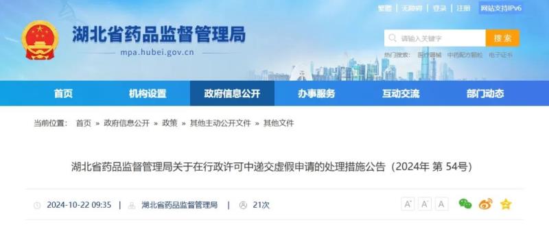 10月22日,湖北省藥監(jiān)局發(fā)布《關(guān)于在行政許可中遞交虛假申請(qǐng)的處理措施公告》,其中提到: