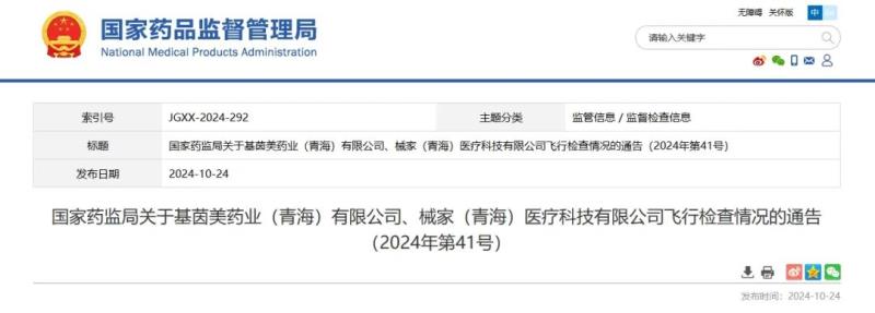 10月24日,國家藥監(jiān)局發(fā)布通告稱,該局組織檢查組隊(duì)醫(yī)療器械注冊人**藥業(yè)(青海)有限公司及其受托生產(chǎn)企業(yè)**(青海)醫(yī)療科技有限公司進(jìn)行飛行檢查,發(fā)現(xiàn)兩家企業(yè)的質(zhì)量管理體系存在嚴(yán)重缺陷。具體如下: