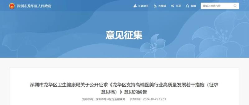 近日,深圳市龍華區(qū)衛(wèi)生健康局發(fā)布《龍華區(qū)支持高端醫(yī)美行業(yè)高質量發(fā)展若干措施(征求意見稿)》(以下簡稱《若干措施》),并向社會公開征求意見。