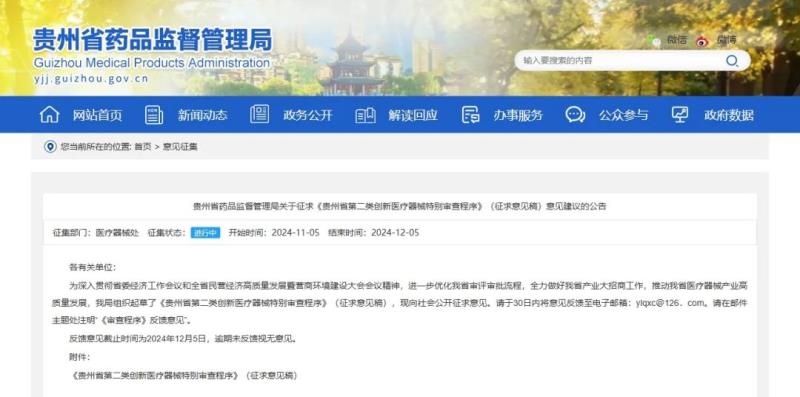 近日,貴州省藥監(jiān)局發(fā)布《貴州省第二類創(chuàng)新醫(yī)療器械特別審查程序》(征求意見(jiàn)稿)(以下簡(jiǎn)稱《程序》),并向社會(huì)公開(kāi)征求意見(jiàn)。