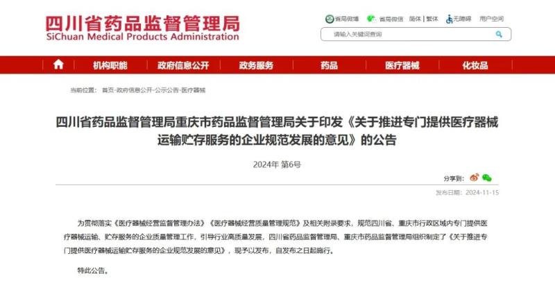 近日,四川省藥監(jiān)局與重慶市藥監(jiān)局聯(lián)合發(fā)布《關于推進專門提供醫(yī)療器械運輸貯存服務的企業(yè)規(guī)范發(fā)展的意見》(以下簡稱《意見》),以規(guī)范四川省、重慶市行政區(qū)域內專門提供醫(yī)療器械運輸、貯存服務的企業(yè)質量管理工作,引導行業(yè)高質量發(fā)展。