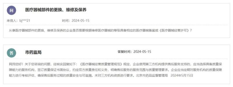 根據(jù)北京市藥監(jiān)局的答復(fù),《醫(yī)療器械經(jīng)營質(zhì)量管理規(guī)范》規(guī)定,企業(yè)使用第三方機(jī)構(gòu)提供售后服務(wù)支持的,應(yīng)當(dāng)選擇具備質(zhì)量保障能力的服務(wù)機(jī)構(gòu),簽訂質(zhì)量保證書面協(xié)議,約定雙方質(zhì)量責(zé)任和義務(wù),明確售后服務(wù)的服務(wù)范圍與質(zhì)量管理要求。企業(yè)應(yīng)當(dāng)定期對服務(wù)機(jī)構(gòu)的質(zhì)量保障能力進(jìn)行考核評估,確保售后服務(wù)過程的質(zhì)量安全與可追溯。未對三方機(jī)構(gòu)資質(zhì)進(jìn)行要求。