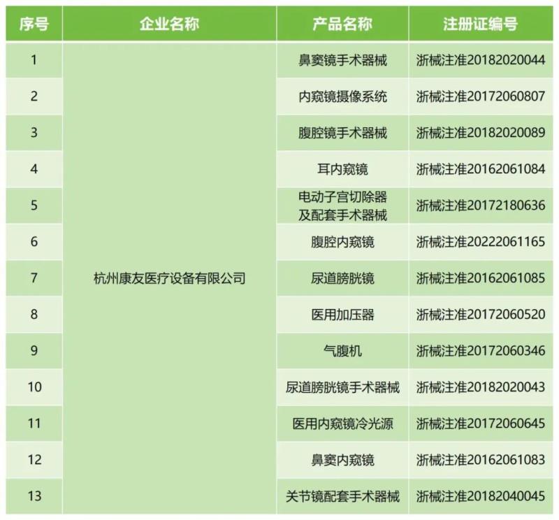 11月25日,浙江省藥監(jiān)局連續(xù)發(fā)布多條關(guān)于注銷醫(yī)療器械注冊(cè)證書的通告,我們通過查看通告具體內(nèi)容發(fā)現(xiàn),本次注銷的注冊(cè)證均為同一家企業(yè)(杭州康友醫(yī)療設(shè)備有限公司)持有,多為內(nèi)窺鏡系列產(chǎn)品,具體清單如下: