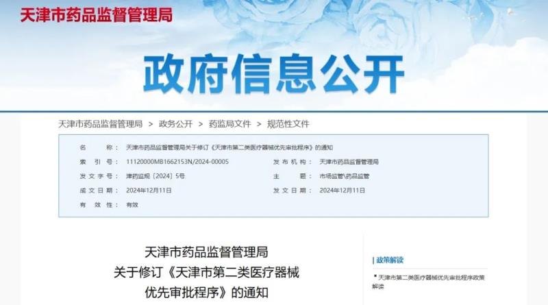 第十八條 本程序自發(fā)布之日起施行,由市藥監(jiān)局負責解釋。《天津市第二類醫(yī)療器械優(yōu)先審批程序》(津藥監(jiān)規(guī)〔2019〕3號)同時廢止。