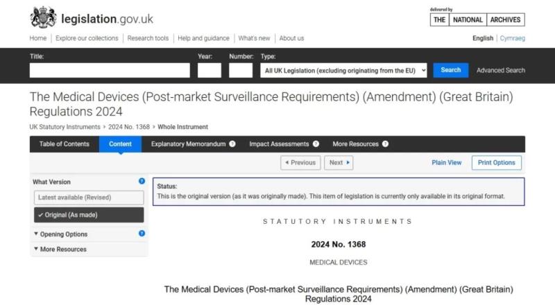 近日,英國MHRA發(fā)布The Medical Devices (Post-market Surveillance Requirements) (Amendment) (Great Britain) Regulations 2024,據(jù)介紹,這些法規(guī)條款是對2002年醫(yī)療器械法規(guī)(以下簡稱2002版法規(guī))的修訂,以插入新的上市后監(jiān)督要求。法規(guī)生效日期:2025年6月16日。